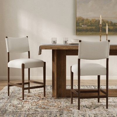 Christopher Knight Home Set of 2 Ruby Mid Century Modern Upholstered Counter Stool with Iron Frame Counter Height Barstools Beige/Espresso