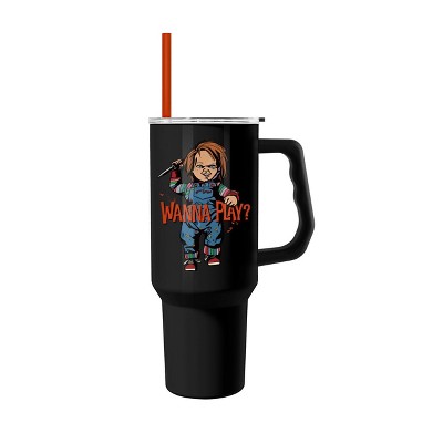 Silver Buffalo Chucky Wanna Play 40oz Stainless Steel Tumbler w Handle