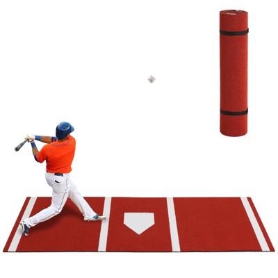Baseball Batting Mat 10x3.8 ft, Hitting Mat Turf with Batters Box and Home Plate for Indoor Outdoor Baseball and Softball Stance Practice, Red