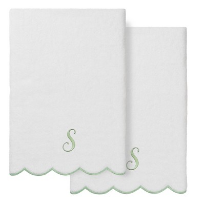 Linum Home Textiles 100% Turkish Cotton ADORNIA Scallop Personalized Towel Collection - Green