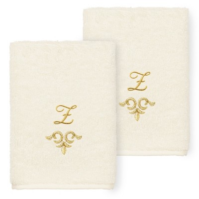 Avanti Ivory with Gold Script Monogram Fingertip Towel Letter H