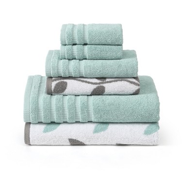 Modern Threads 100% Cotton Bath Towels Set of 6,Organic Vines- Aqua