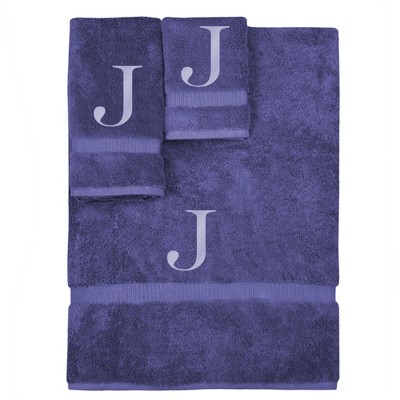 BC BARE COTTON Monogrammed Towel Set, Personalized Gift, Set of 3 - Navy - Silver Block