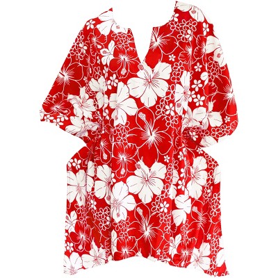 HAPPY BAY Women's Summer Holiday Beachwear Mini Bathing Suit Loose Beach Dress Flowy Swimsuit Cover ups Dress for Women Medium-Large Red, Floral