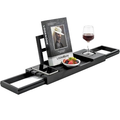 Dcolora Adjustable Bamboo Bathtub Caddy Tray ,Bath Caddies with Book Tablet Wine Glass Cup Towel Holder