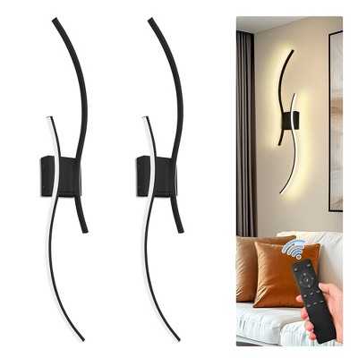 YANSUN 2-Pack Nick KD Indoor Wall Lights with Black Finish, Integrated LED, Dual Wave 80cm, RF Remote Control, Warm 3000K
