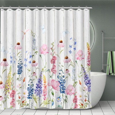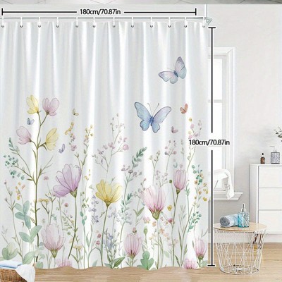 Lomsoe 1PC Soft Watercolor Wildflower Butterfly Shower Curtain, Light Floral Print, Waterproof Bathroom Curtain
