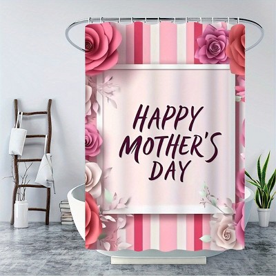 Lomsoe 4pcs Happy Mother's Day Logo With 3D Paper Rose Stripe Shower Curtain Set For Bathroom Decor