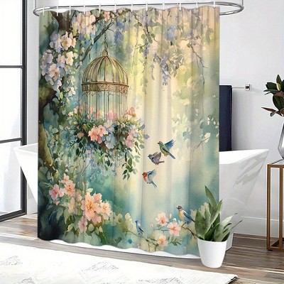 Lomsoe 1PC Vintage Bird & Rose Shower Curtain, Elegant Floral Print Style Waterproof Bathroom Decor Set.