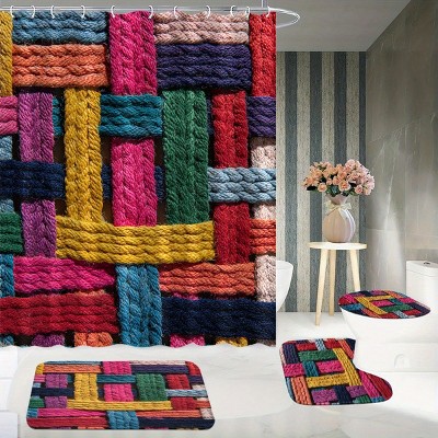 Lomsoe 4PCS Colorful Chunky Knit Style Shower Curtain Set, Vibrant Texture, Excellent for Modern Bathroom Decor