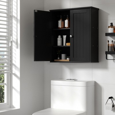 Celebalcony Wooden Wall Cabinet, Water-Resistant Medicine Storage with 2 Door for Bathroom & Kitchen, Space Saving Storage with 3-Tier Shelves