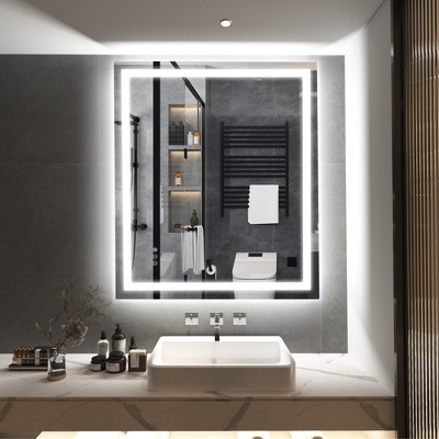 SUMERAIN 30x36" Wall Tempered Glass Bathroom Mirror, ETL Anti-Fog Vanity Mirror 3 Color Temperatures