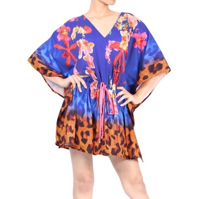 LA LEELA Women's Beachwear Summer Mini Tropical Dress Swimsuit Coverups for Women V Neck Tops Swim Beach Cover Ups for Swimwear Women XL-XXL Lapis,
