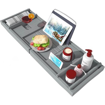 Dcolora Adjustable Bamboo Bathtub Caddy Tray - with Soap Dish