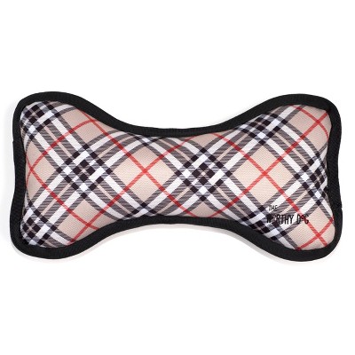 The Worthy Dog Tough Bias Plaid Bone Dog Toy