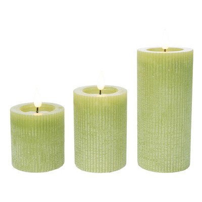 Transpac LED Wax Green Candles Set of 3 Flameless Home Decorations for Spring