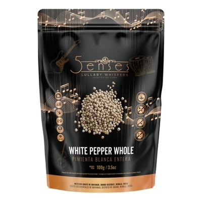 5Senses Malabar Whole White Pepper | Pimienta Blanca | Lullaby Whispers | 100% Natural, Non-GMO, Fairtrade