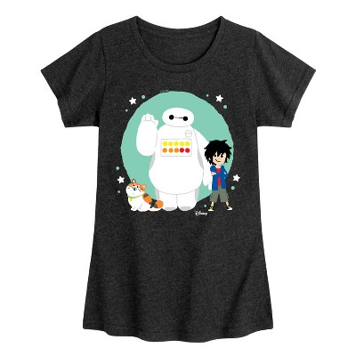 Girls' - Big Hero 6 - Baymax, Hiro, and Mochi Fitted Short Sleeve Graphic T-Shirt