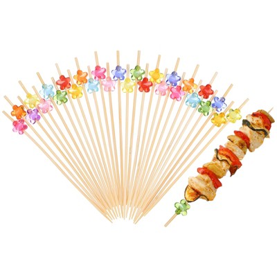 Unique Bargains Bamboo Multipurpose Durable Natural Barbecue Skewers Faux Pearl Flower