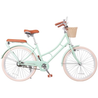 NAYSAYE Women Beach Cruiser Bike with Front Basket & Sturdy Frame for Comfortable Outdoor City Commuting, Green, 63.98"*24.53"*38.82"