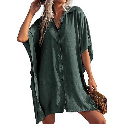 Ekouaer Women's Swimsuit Cover Up 3/4 Sleeve Beachwear Bikini Coverups Button Down Oversized Cover Up Shirt