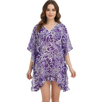 HAPPY BAY Womens Summer Vacation Beachwear Bathing Suit Loose Beach Dress Flowy Swimsuit Cover Ups Dress Small-Medium Purple, Floral