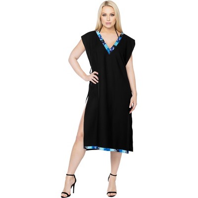 HAPPY BAY Womens Beachwear Swimsuit Coverups for Women Summer Swim Beach Dress Cover Ups for Swimwear Women Loose Party Bathing Suit 1X-2X Black_AC277