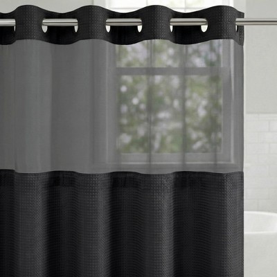 Americanflat 72x75 Hookless Waffle Pattern Shower Curtain - Water-Resistant Long Shower Curtain with Sheer Panel, Snap-In Liner, and Durable Grommets