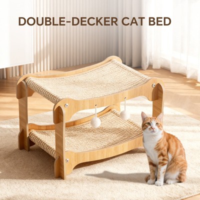 AEELLEEA 2-in-1 Cat Recliner & Scratcher, Double Cat Bed, Wooden Sisal Cat Furniture for Claw Care