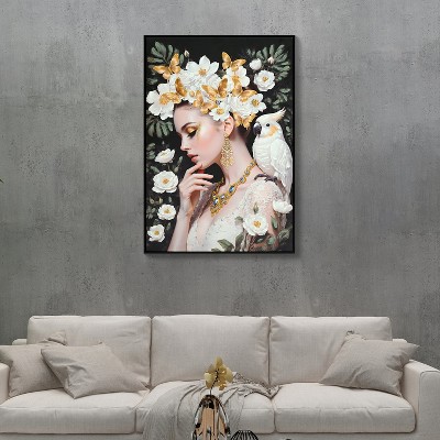 Beauty Lady with Floral Canvas Wall Art, Hand-Painted Gold Accents, Ready to Hang, 24x36 Inches