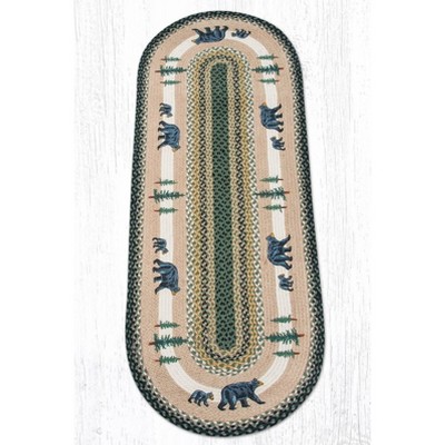 Earth Rugs Bear Timbers Oval Patch Rug, 2'x6', Braided Jute Runner with Lodge Bear Design
