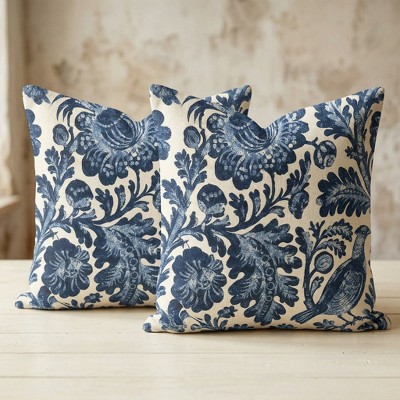 Lomsoe French Pastoral Throw Pillow Covers Set of 2, 18x18 Inch Blue Farmhouse Decorative