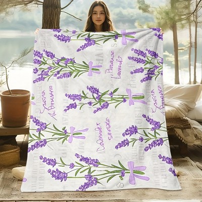 Lomsoe 1pc Floral Flannel Blanket with Purple Flowers & Green Leaves, Perfect Gift for Family & Friends, Blanket for Bed, Cozy Home Decor.