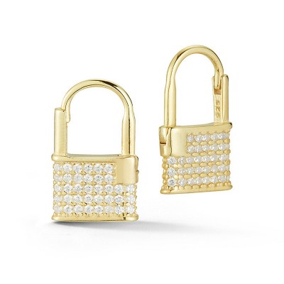 Sphera Milano Sterling Silver Mini Pave Padlock Earrings Gold