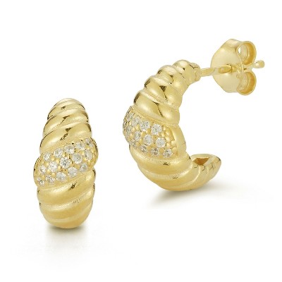 Sphera Milano Sterling Silver CZ Snake Hoop Earrings Gold