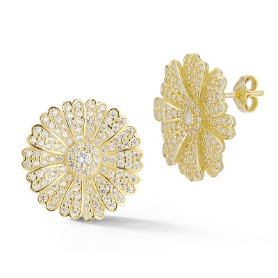 Sphera Milano Sterling Silver CZ Flower Stud Earrings Gold