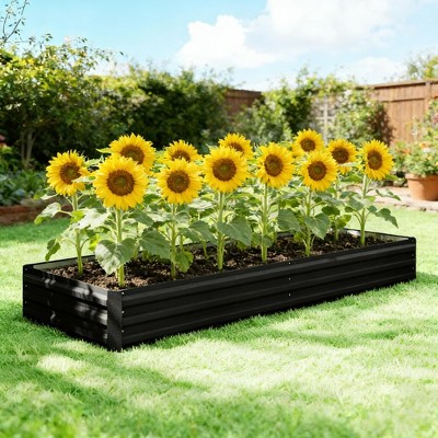Gulches 95x35.75x11.75 Inch Raised Garden Bed Galvanized Steel Open Bottom Planter Box for Vegetables Herbs Black