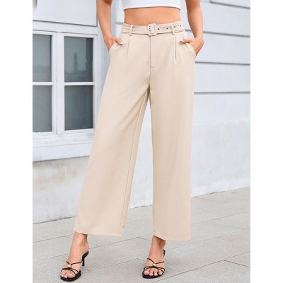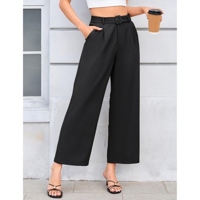 Women High Waist Belted Wide Leg Pants Pleated Front Cropped Length Regular Fit Casual Office Wear