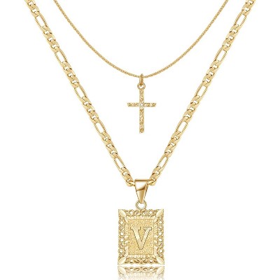 14K Gold Plated Initial Cross Necklace - A-Z Letter Layering Pendant for Women
