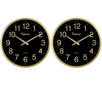 Impecca 18-inch Quiet Movement Wall Clock - Gold/Black 2-Pack