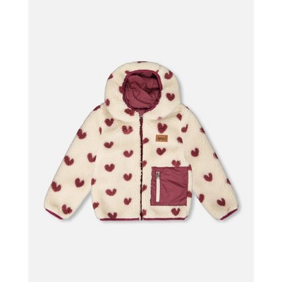 Deux par Deux Girl Reversible Mid-Season Fleece Jacket Burgundy Heart - 8 Years