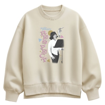 Women's Aretha Franklin Respect Studio Oversized Fleece Crew Sweatshirt - Cream - Small