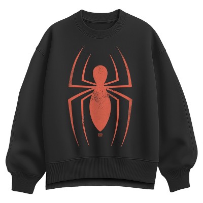 Women's - Marvel - Spider Faded Logo Oversized Fleece Crew Sweatshirt