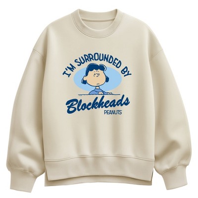 Women's - Peanuts - I'm Surrounded By Blockheads Oversized Fleece Crew Sweatshirt