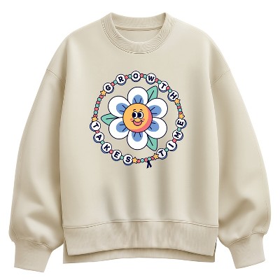 Women's - Instant Message - Growth Takes Time Beads Oversized Fleece Crew Sweatshirt