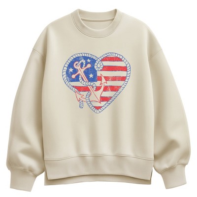 Women's - Instant Message - Anchor Heart Oversized Fleece Crew Sweatshirt