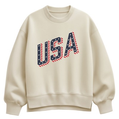 Women's - Instant Message - USA Letters Oversized Fleece Crew Sweatshirt