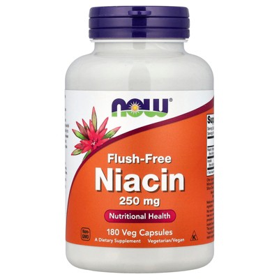 NOW Foods Flush-Free Niacin, 250 mg, 180 Veg Capsules