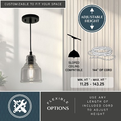 VAXCEL Marshall LED Compatible Matte Black Transitional Mini Pendant Ceiling Light Clear Glass Globe