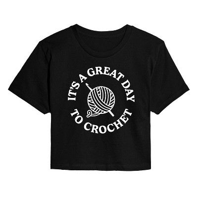 Women's - Instant Message - It's a Great Day to Crochet Cropped Graphic T-Shirt